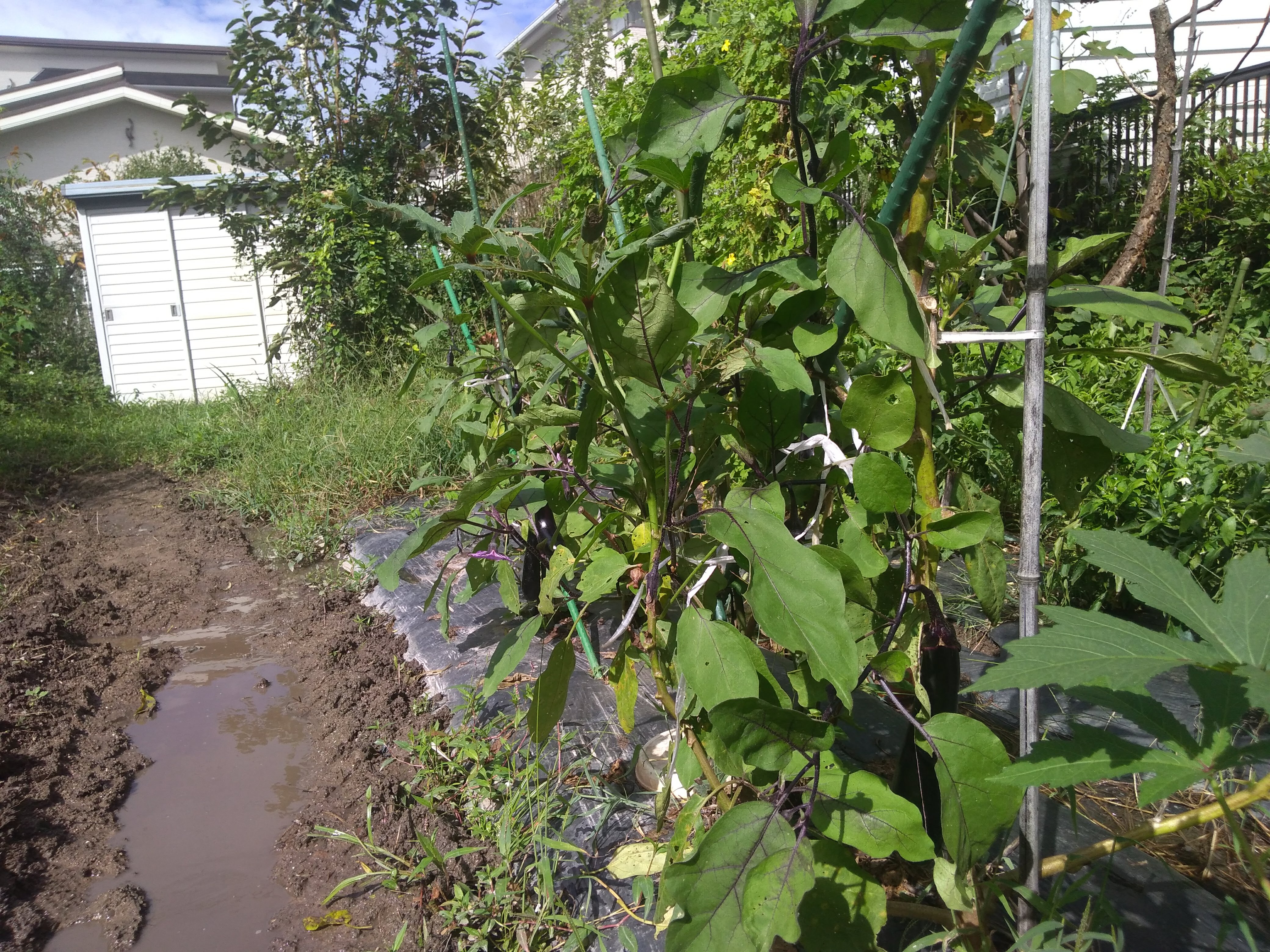 ここにきて茄子さんの収量がぐんと延びました。麻婆茄子、揚げ茄子酢醤油漬けなどなど美味しくいただく予定です。秋茄子に向けて多少剪定しておきました。黒マルチがあるので根切りはしていません。どうなるか、経過観察です。