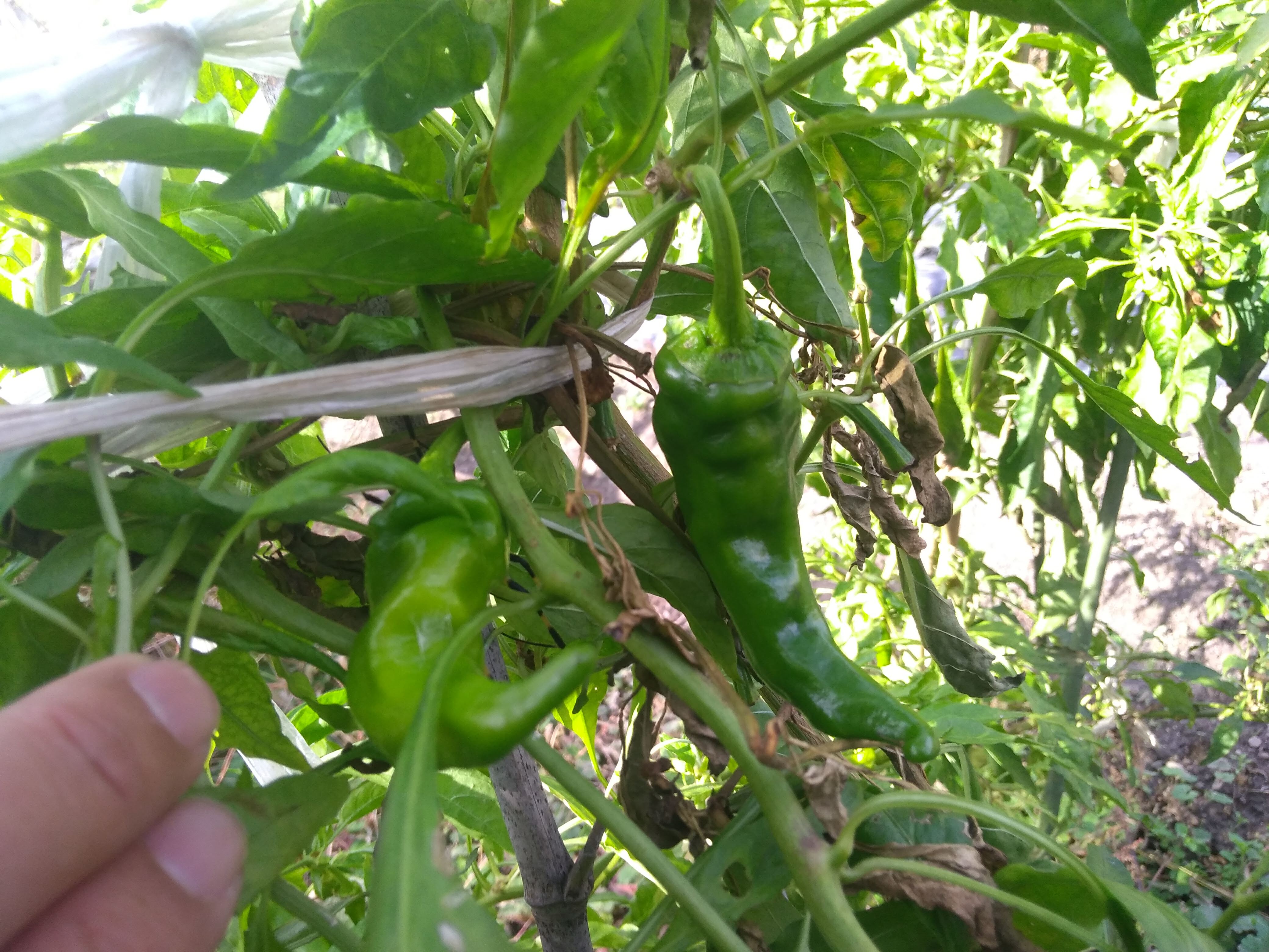 シシトウの収穫が復活の兆し。長雨で収穫が懸念されていましたが、晩夏の陽光を浴びて、ぐんぐん成長しています。