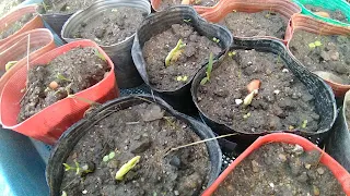 空豆の種をポットに植え付けました。